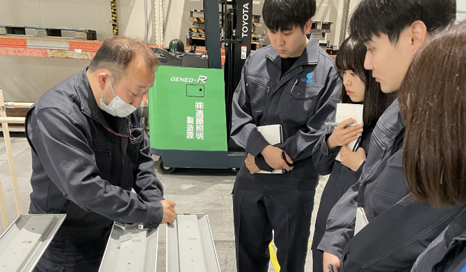 当社の新入社員研修は、50以上の部署が協力する全社育成文化が最大の魅力です。研究所での企画開発→工場での製造組立→大阪・東京での営業同行とモノづくりの現場の流れを一気通貫で体験し学ぶことができます。全社を巻き込んだ手厚いサポート体制のもと、配属前に業務知識だけでなく会社の価値観を知り、主体性や提案力を鍛え、社内の幅広い人脈も形成。お客様に響く価値提案ができるプロへと成長できます。