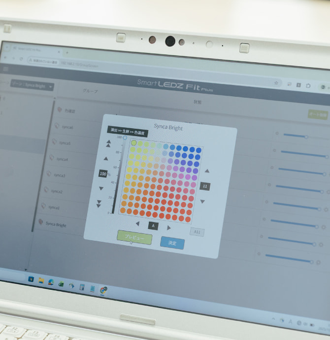 田中 私は照明本体を扱わず、調光のシステムを担当しています。主に無線の調光が領域です。「Synca Bright」では、色を選ぶUIの開発に携わりました。